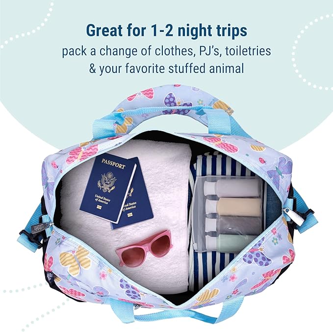Wildkin Kids Overnighter Duffel Bag – Carry-On Size, Ideal for School & Sleepovers – Butterfly Garden