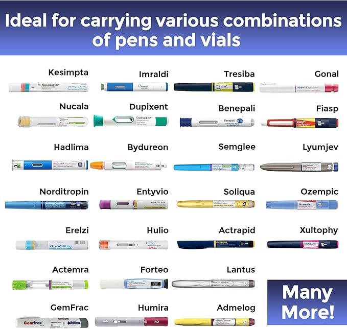 - THE EXTRA LARGE FRIO IS IDEAL FOR CARRYING 8 PENS OR 10 VIALS - FRIO comes in many different sizes to accommodate your medication needs. Not the right FRIO size? See the size guide below.