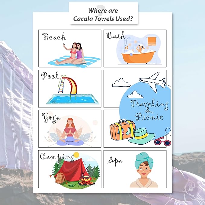 Cacala Lightweight and Thin Turkish Beach Towel 100% Cotton Sand-Free and Quick-Drying Goodness Perfect as an Extra Large Travel Towel, Beach Accessory, or Gift for Beach Lovers, 37 x 70