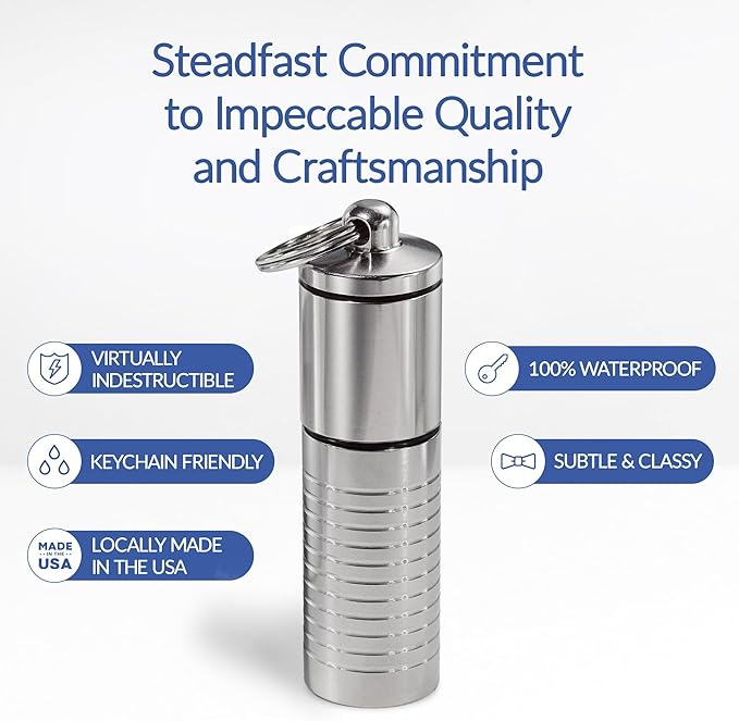 - Made of Superior Solid Materials - You deserve a pill container keychain that’s as tough and resilient as you are. Our mini pill holders are crafted with stainless steel. Engineered to outlast repeated use and the harshest conditions, they won’t easily break.