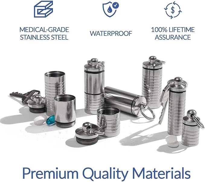 - Protects Your Pills - Keep your pills dry and secure with our airtight, smell-proof, and waterproof pill containers. These pill box keychains further safeguard contents with a high-grade rubber O-ring seal. On top of that, their medical-grade construction ensures compatibility with your meds.