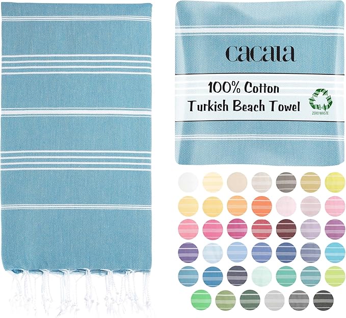 Cacala Lightweight and Thin Turkish Beach Towel 100% Cotton Sand-Free and Quick-Drying Goodness Perfect as an Extra Large Travel Towel, Beach Accessory, or Gift for Beach Lovers, 37 x 70