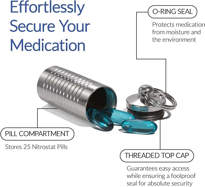 - Easy to Open - No more fumbling over keychain pill containers to retrieve your pills. Finely milled threads give the wide nitroglycerin pill holder keychains the smoothest open and close.