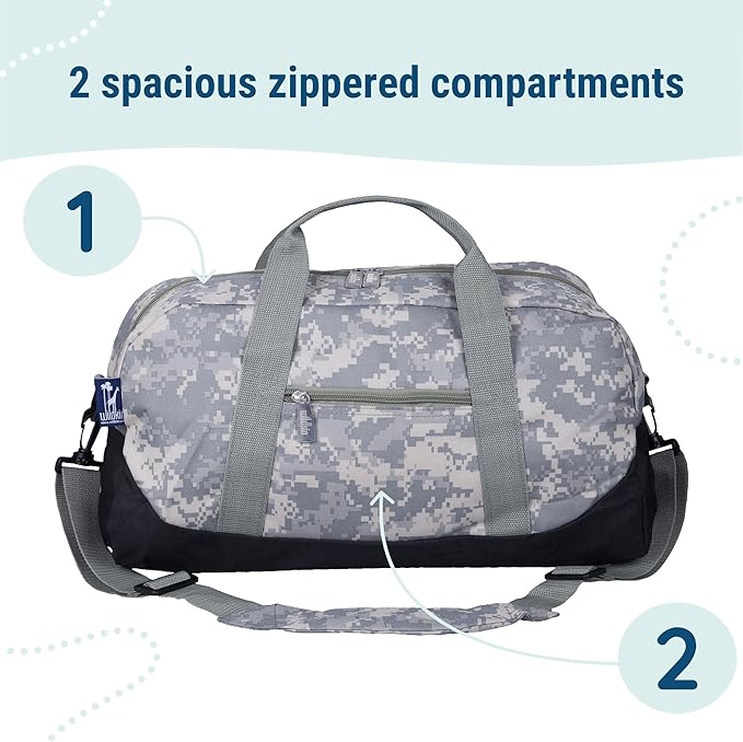 Wildkin Kids Overnighter Duffel Bag – Carry-On Size, Ideal for School & Sleepovers – Digital Camo