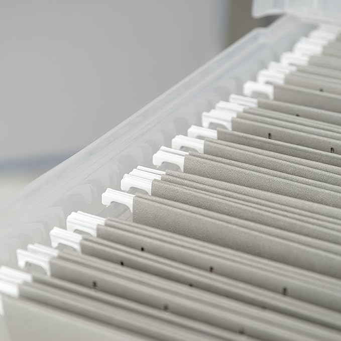 IRIS USA File Box File Organizer w/ Hinged Split Latching Lid for Letter/Legal File, Water Resistant Document Box, BPA-Free, Plastic Storage Bin Tote Organizer, Stackable, Nestable, Clear 44 Qt. 5Pack
