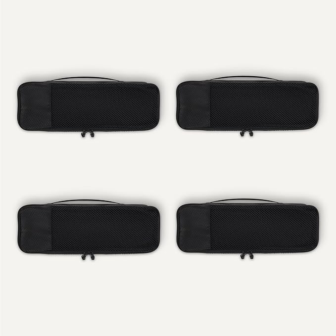 Amazon Essentials 4-Piece Packing Cubes Travel Accessories Set, Luggage Organizer with Double Zipper, Mesh Top, 100% Polyester, Slim, Black (Previously Amazon Basics)