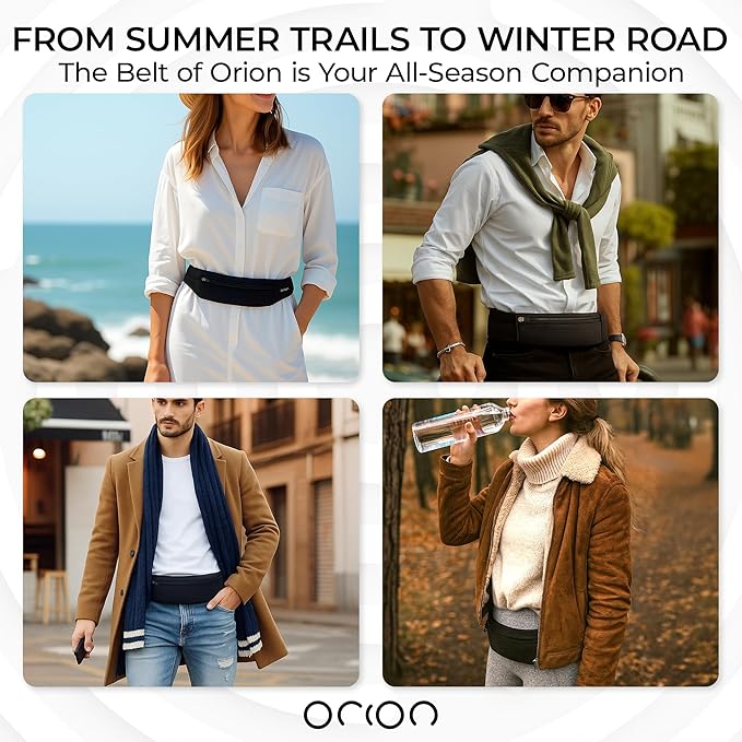 The Belt of Orion Running Belt & Slim Fanny Pack for Men & Women Anti-theft Passport Holder & Money Belt For Travel - Comfortable Phone Holder For Running, Hiking, & at the GYM - Classic 9"x3.5"