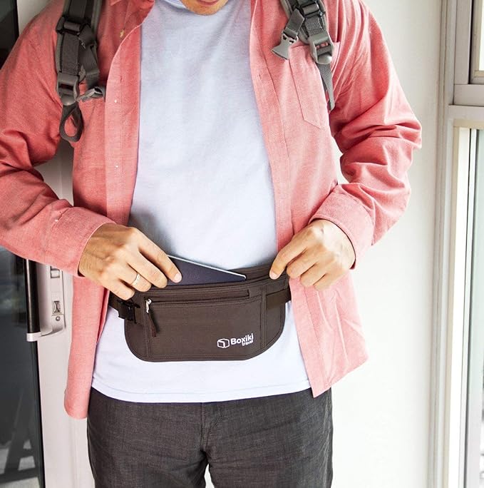 - SPACIOUS & ORGANIZED STORAGE – Keep all your essentials within easy reach! This RFID money belt offers multiple compartments, including two zippered pockets and a hidden rear pocket. Stay organized and secure with this lightweight travel money belt, perfect for storing passports, boarding passes, currency, and even your phone without bulkiness.