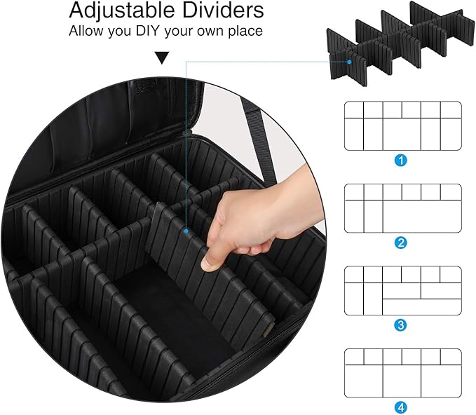 - DIY YOUR OWN PLACE: This makeup case with adjustable dividers, you can move the partitions as needed, give you more space to arrange the stuff.