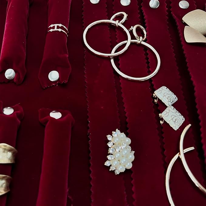 UnionPlus Velvet Jewelry Case Roll Bag for Necklace Bracelet Earrings Rings Multi-compartments, Great Jewelry Organizer for Travel, Burgundy