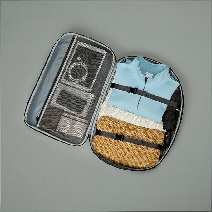 - SMART ORGANIZATION: Stay organized with this travel backpack featuring a main compartment with zippered mesh space, optional midway shelf, and compression straps for secure packing