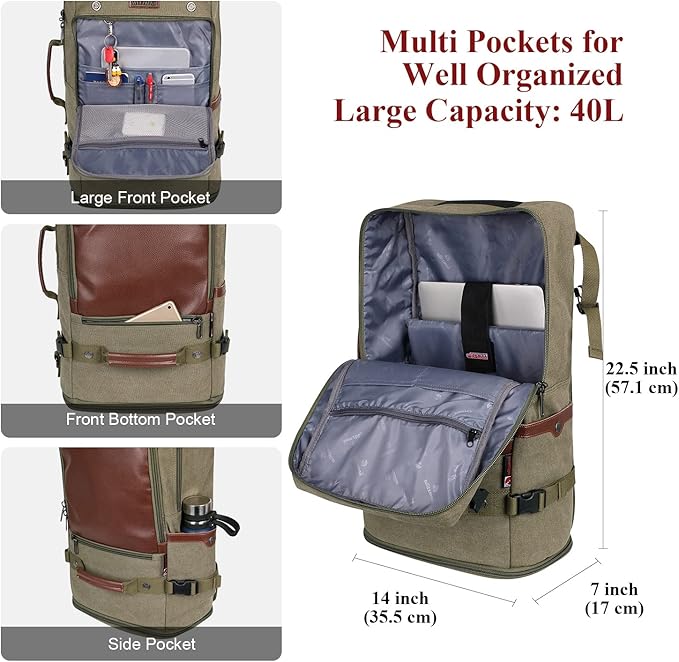 - Multifunctional Carrying On Backpack: Come with an adjustable and removable shoulder strap, can be used as a duffel bag. Good choose for a travel backpack, laptop backpack for men, work backpack, office work bag for men and women.