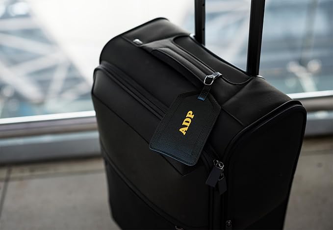 Personalized Monogrammed Black Leather RFID Passport Wallet and Luggage Tag