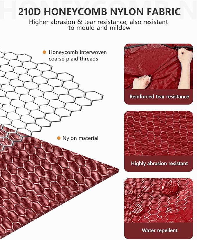 - Built to last long time: Made of honeycomb 210D nylon fabric, it's waterproof and wear-resistant. Premium metal zippers and reinforced major stress points will never fail you