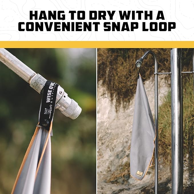 - Snap Loop for Hanging Anywhere: Perfect for camp towels—quick dry, backpacking-ready, and outdoor-built. Snap loop hangs from tent poles, trees, or camper hooks. Dries fast at camping or in the locker room—no more soggy gear in your bag