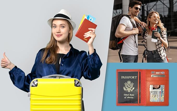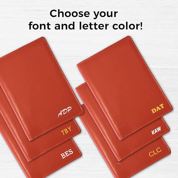 Personalized Monogrammed Orange Leather RFID Passport Wallet