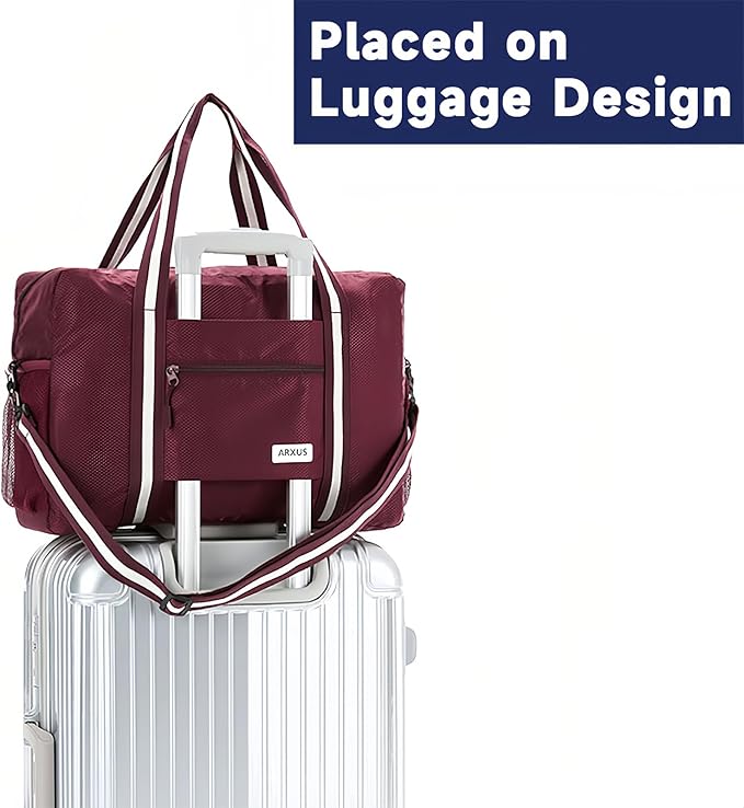 - Placed on Luggage Design:The trolley sleeve on the back of travel duffle bag, which can be fixed on suitcase to free up your hands; Zipper pocket can hold items such as ID cards, passports, tickets, change, keys, etc. that need to be used at any time