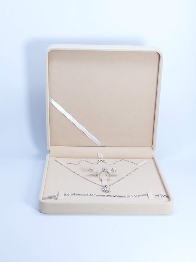 Jewelry Set Velvet Box Necklace Earring Ring Necklace Bracelet Gift Display Case Wedding Jewelry Storage Holder (Beige)