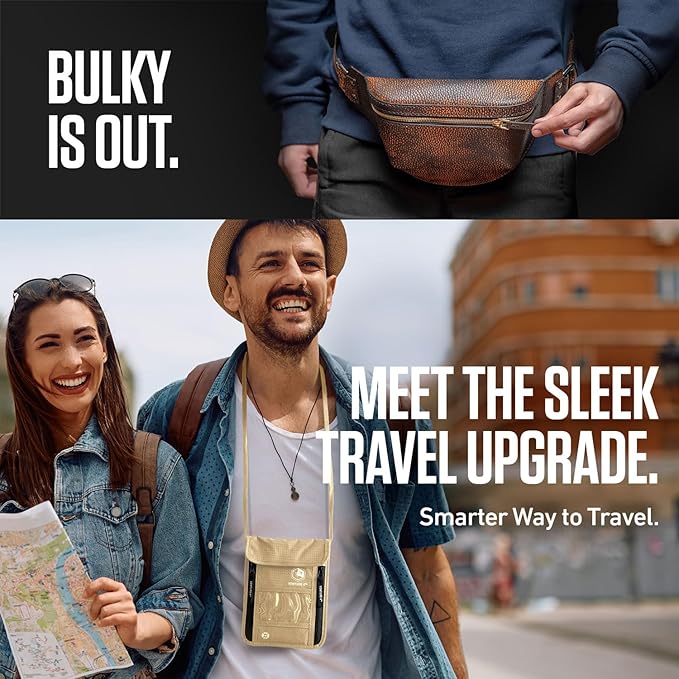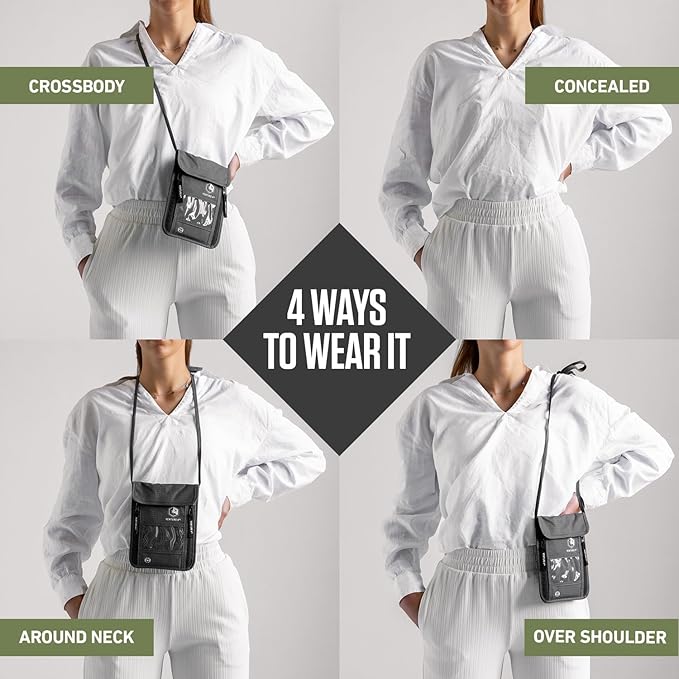 - COMFORTABLE TRAVEL NECK WALLET – DISCREET & SECURE DESIGN: Lightweight and slim travel neck wallet and passport holder for travel designed for comfort and hidden security. The 6.25” W × 8” H profile lies flat under clothing with breathable mesh backing and an adjustable strap. A discreet passport holder worn around the neck, hidden money pouch, and travel wallet ideal for airports and sightseeing.