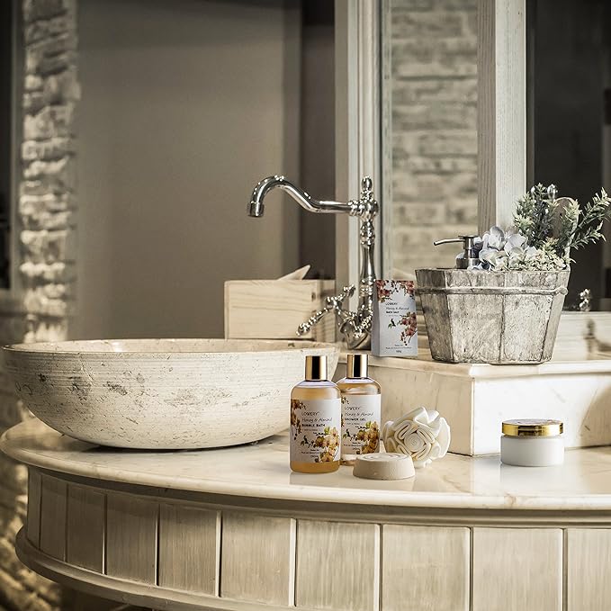 - HONEY & ALMOND SCENT ✿ The sweet, nutty fragrance of Honey & Almond will carry you away into sudsy paradise! This delicious fragrance is infused with rich, buttery notes and conjures the image of a warm baked treat on a snowy day. Let your body soak up the goodness while you pamper your skin with the finest bath products.