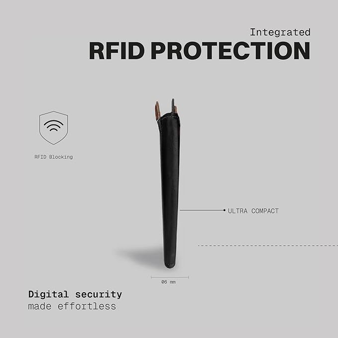 - Integrated RFID-blocking layer helps shield contactless credit cards and IDs from unauthorized scanning when stored inside the cardholder, supporting everyday digital security