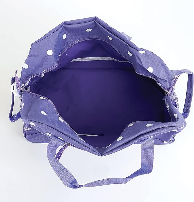 Lillian Vernon Personalized Duffel Bag for Kids, Roomy Purple and White Polka Dot Weekender With Front & Side Compartment, Customizable Girls Sports & Travel Bags With Custom Name, 9" x 10 ½" x 19"