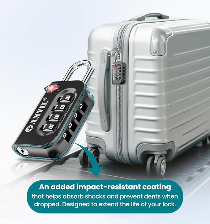 ANVIL TSA Approved Luggage Lock - 4 Digit Combination, 10,000 Combinations, Easy-Read Password Window, Travel Lock for Suitcases, Backpacks, Gym & Student Lockers, Baggage