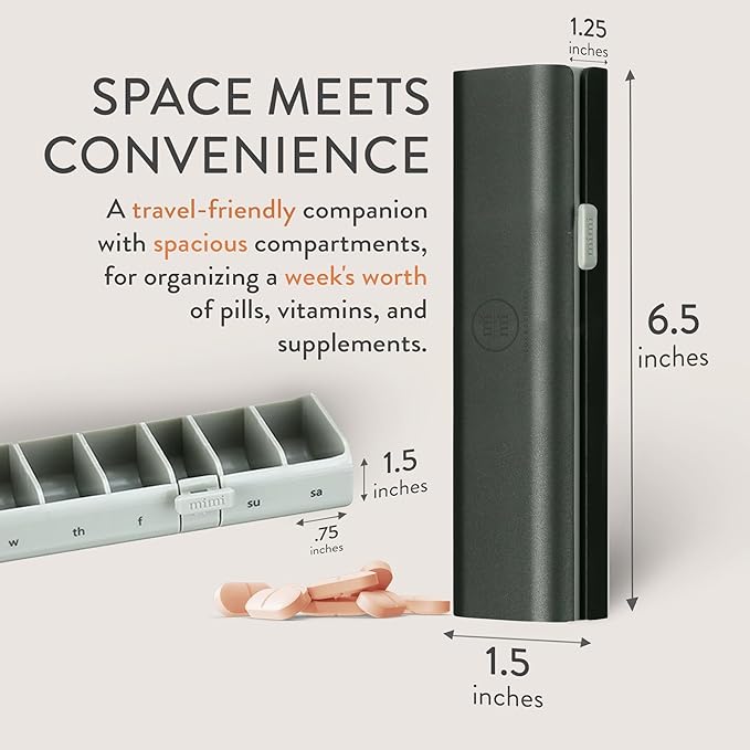 - Modern & Elegant Design: Mimi Medcessories' Pretty Pill Boxes offer a sophisticated touch with a stylish, sleek case that make daily vitamin management a chic affair. These organizers not only elevate your health routine but also blend seamlessly with any modern accessory collection, making them essential for health-savvy individuals.