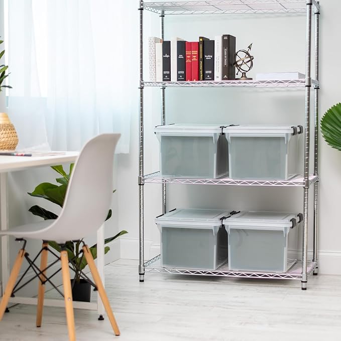 - WATER-RESISTANT AND DURABLE – The Plastic Storage File Box is perfect for bankers or anyone. Its water-resistant design protects important files, letters, and personal items from spills, making it ideal for storing and moving personal belongings.