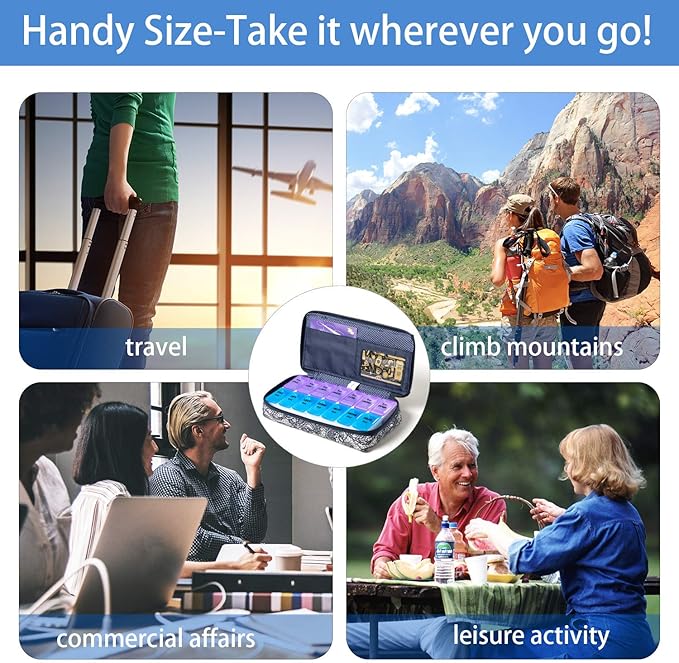 - 【Quality Materials】Pill box 7 day with removable larger compartments design, Made of food-grade PP plastic and safe for medical organize use, keeps you meds organized and intact.