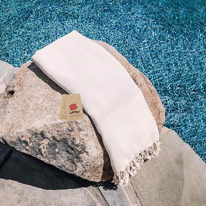 Bazaar Anatolia Turkish Beach Towel 100% Cotton Bath Towels 71x39 Quick Dry Sand Free Lightweight Large Oversized Herringbone Beige