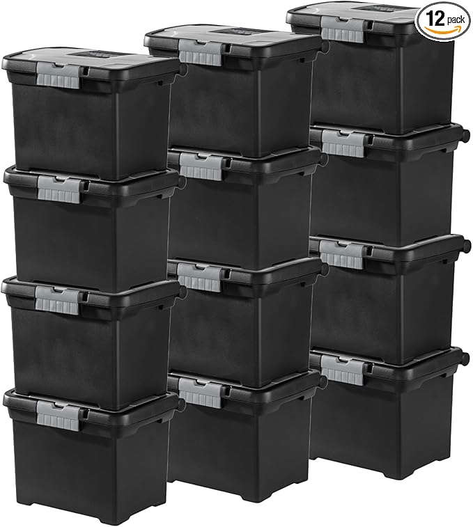 Sterilite Portable Lockable File Box Organizer with Handle and Clear Lid (12 Pack)