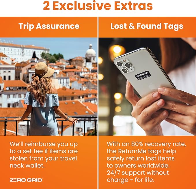 - Added Security for Peace of Mind - Designed for convenience and safety, this travel wallet includes two recovery tags from ReturnMe, a global lost & found service. Attach them to your phone, passport, or laptop, and if lost, the service helps facilitate their return.