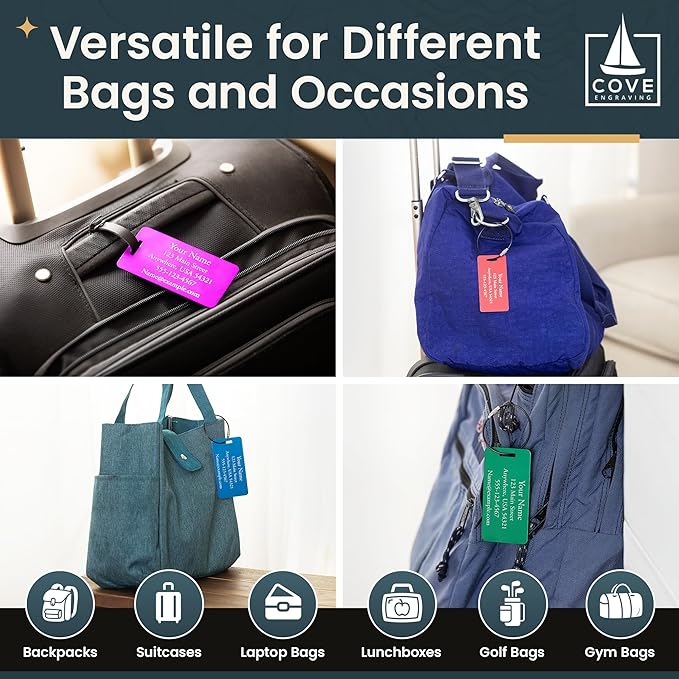 - USES: These unique, stylish, and durable tags can be used to put your contact information on backpacks, suitcases, laptop bags, or golf bags.