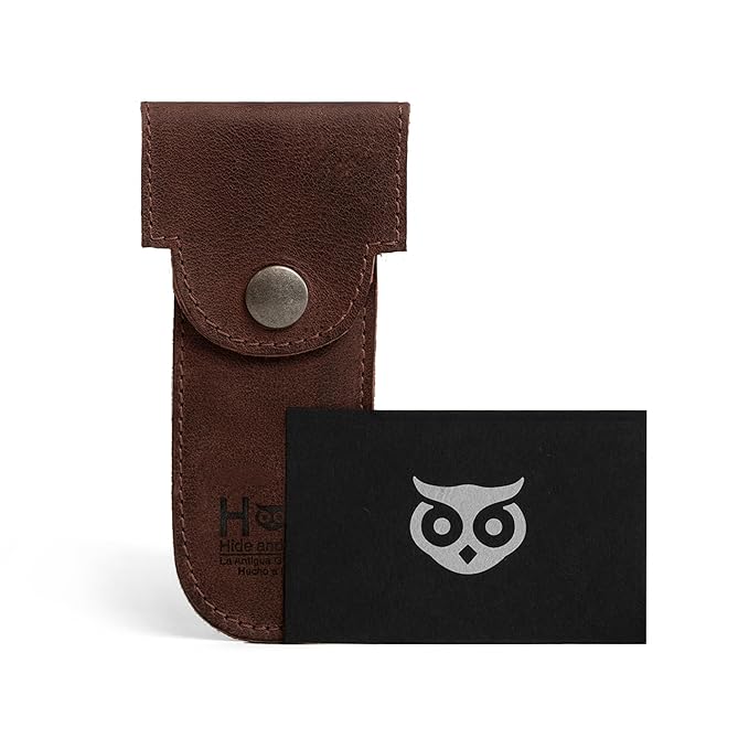 - HANDMADE FROM SOFT & ATTRACTIVE FULL GRAIN LEATHER: Hide & Drink’s Razor Protector Case is hand cut and handmade using high-quality Full Grain Leather, the best leather money can buy. Handcrafted by expert artisans of Pastores, Guatemala (a town dedicated to the fabrication of leather goods) the razor cover is attractive, stylish and unique in design.