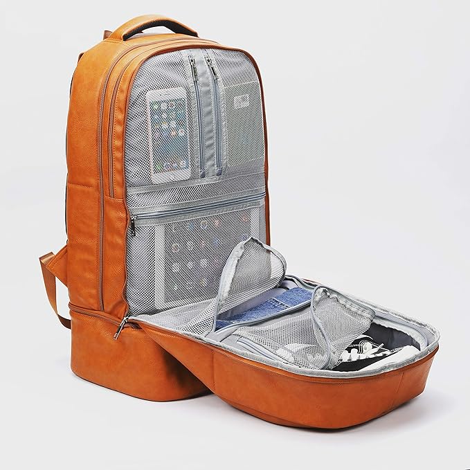 Sole Premise Leather Bag for Multi-functional Travel Carry-on with Shoe, Laptop and Clothes Compartments for Men & Women (Brown)