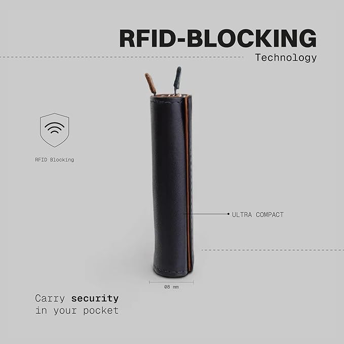- Advanced RFID-blocking layer integrated into the wallet to help protect contactless card data from unauthorized scanning; passive protection supports safer transit through crowded or public spaces