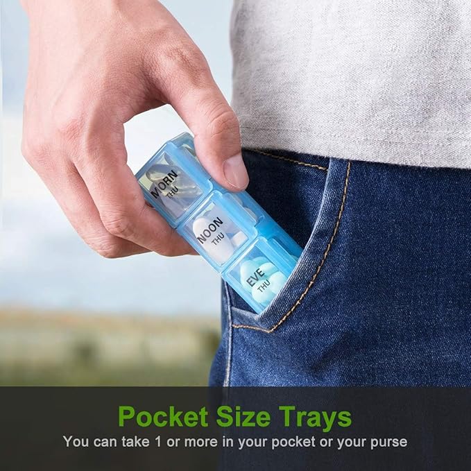 - Easy To Use: This pill box is designed with one-hand operation, easier for the elder and old to open, not to reduce every component dampproof performance. Pocket size trays allow you to take only 1 tray in your pocket and meet your daily medication needs.