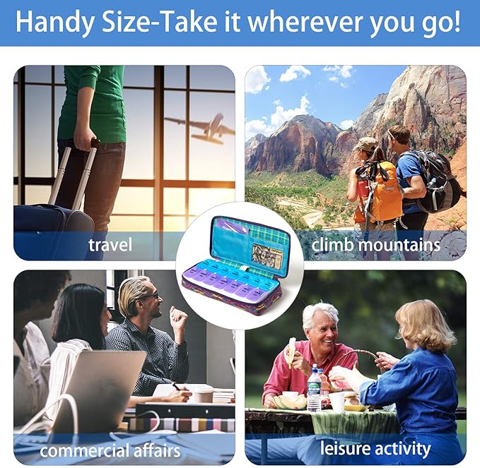 - 【Quality Materials】Pill box 7 day with removable larger compartments design, Made of food-grade PP plastic and safe for medical organize use, keeps you meds organized and intact.