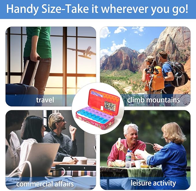 - 【Quality Materials】Pill box 7 day with removable larger compartments design, Made of food-grade PP plastic and safe for medical organize use, keeps you meds organized and intact.