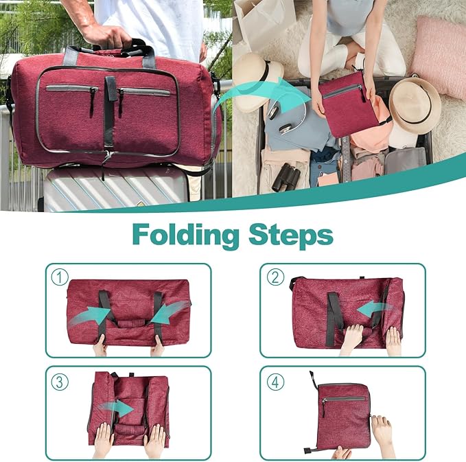 - Foldable and Spacious travel bag: The foldable duffle bag for travel can be folded into a really small size taking up so little space but opens up to have about 85L capacity of travel duffel bags to use as the luggage bag in case that your suitcase swells, this travel bag works very well when used in combination with a luggage, it's to give you an organized lightweight travel experience