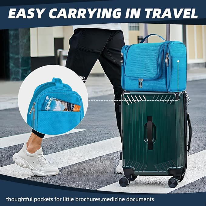 Buruis Large Toiletry Bag for Women and Men, Hanging Travel Bag for Makeup, Cosmetics, Shaving, Toiletries, Water-Resistant Dopp Kit for Gym, Camping, or Daily Use, Light Blue