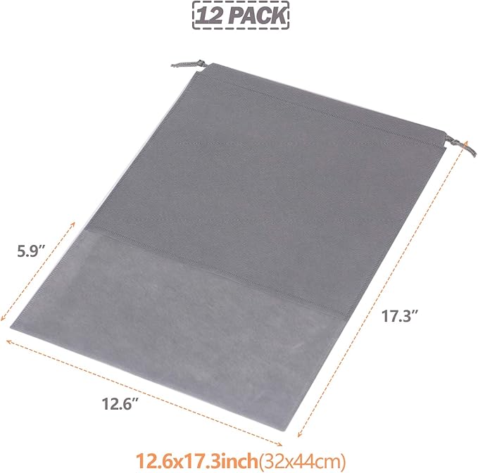 DIOMMELL 12PCS X-Large Non-Woven Fabric Shoe Bags with Drawstring, Black