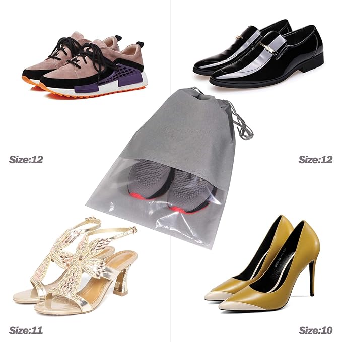 - MUST-HAVE FOR DAILY USE & TRAVEL: Protects your shoes against scuffs and scraps when storing in suite case, keeps your shoes well organized and dust free in the closet. Good design for home and travel use. ( Can also be used as makeup bag, toiletries bags and for other uses.)