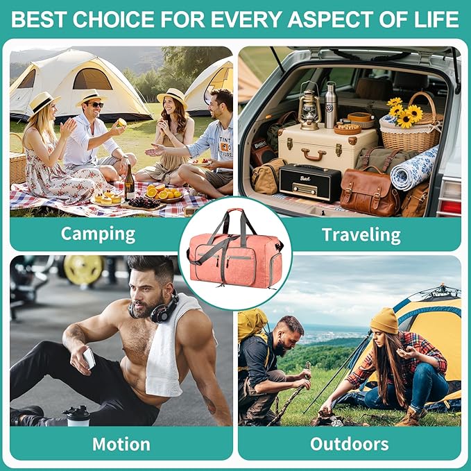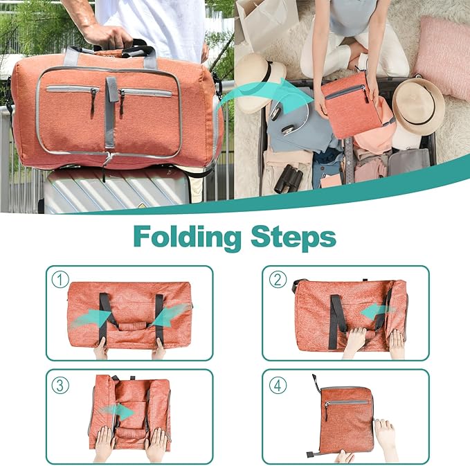 - Foldable and Spacious travel bag: The foldable duffle bag for travel can be folded into a really small size taking up so little space but opens up to have about 85L capacity of travel duffel bags to use as the luggage bag in case that your suitcase swells, this travel bag works very well when used in combination with a luggage, it's to give you an organized lightweight travel experience