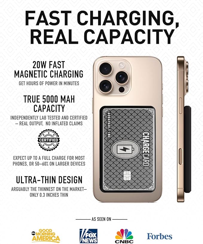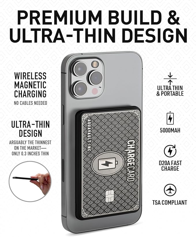 - [Optimized for Best Performance & Real-World Use] – For maximum battery health and performance, fully charge the power bank before first use. Additional Note: Other brands overstate their capacities, expect accurate 5000 mAh performance and consistent fast charging. Note: Due to Chargecard's premium steel build and slim profile, Chargecard may feel warmer than bulkier plastic models during use—this is normal and indicates sturdy design, not overheating.