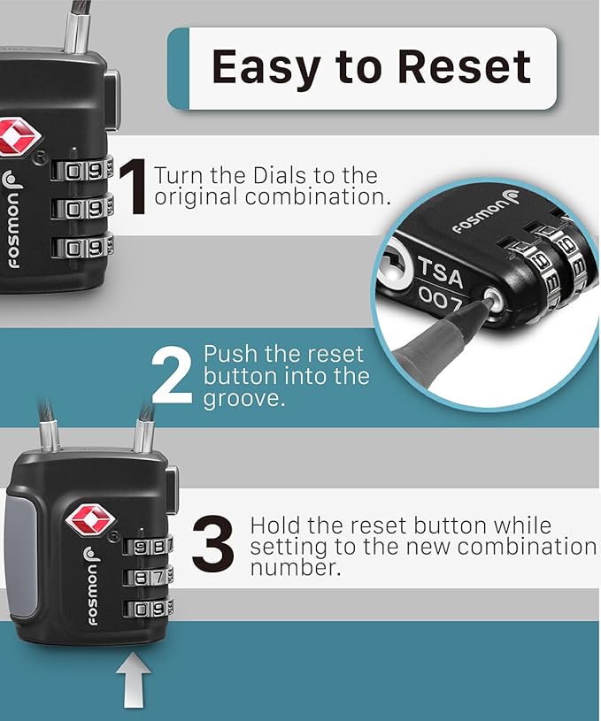 - [VERSATILE LOCKS] The lock is safe with a 3-digit combination. The release button makes it easy to unlock, and prevents accidental unlocking. The flexible cable makes it great not only for luggage, but also for backpack, suitcase, and locker.