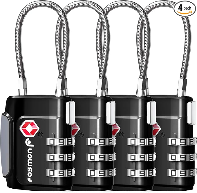 Fosmon TSA Approved Cable Locks for Luggage, Suitcase, Gun Case Lock with Push Release Button, 3 Digit Long Shackle Combination Wire Lock for Backpack