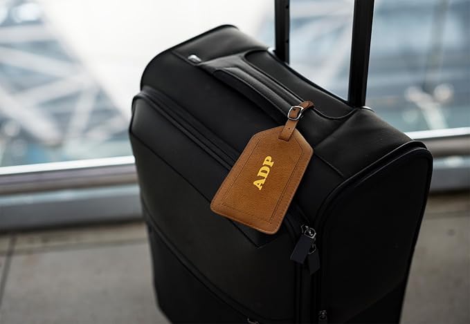 - Luggage Tag: strong & adjustable buckle and strap keeps securely fastened. Includes protective leather flap for privacy protection. Dimensions: 2.75" x 4.5" (not including buckle)