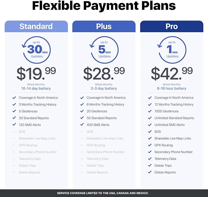 - COMPACT 4G GPS TRACKER - Perfect for tracking vehicles, loved ones (teens, spouses, children, elderly), pets or assets. With its sleek and compact design, it easily slips into cars, backpacks, strollers, luggage and is highly concealable. Monthly subscription required. No contracts or activation/cancellation fees. $19.99 – 30 second updates. $28.99 – 5 second. $42.99– 1 second. *Includes Magnetic Weatherproof Case & Fabric Zipper Case. USA, Canada & Mexico Only.